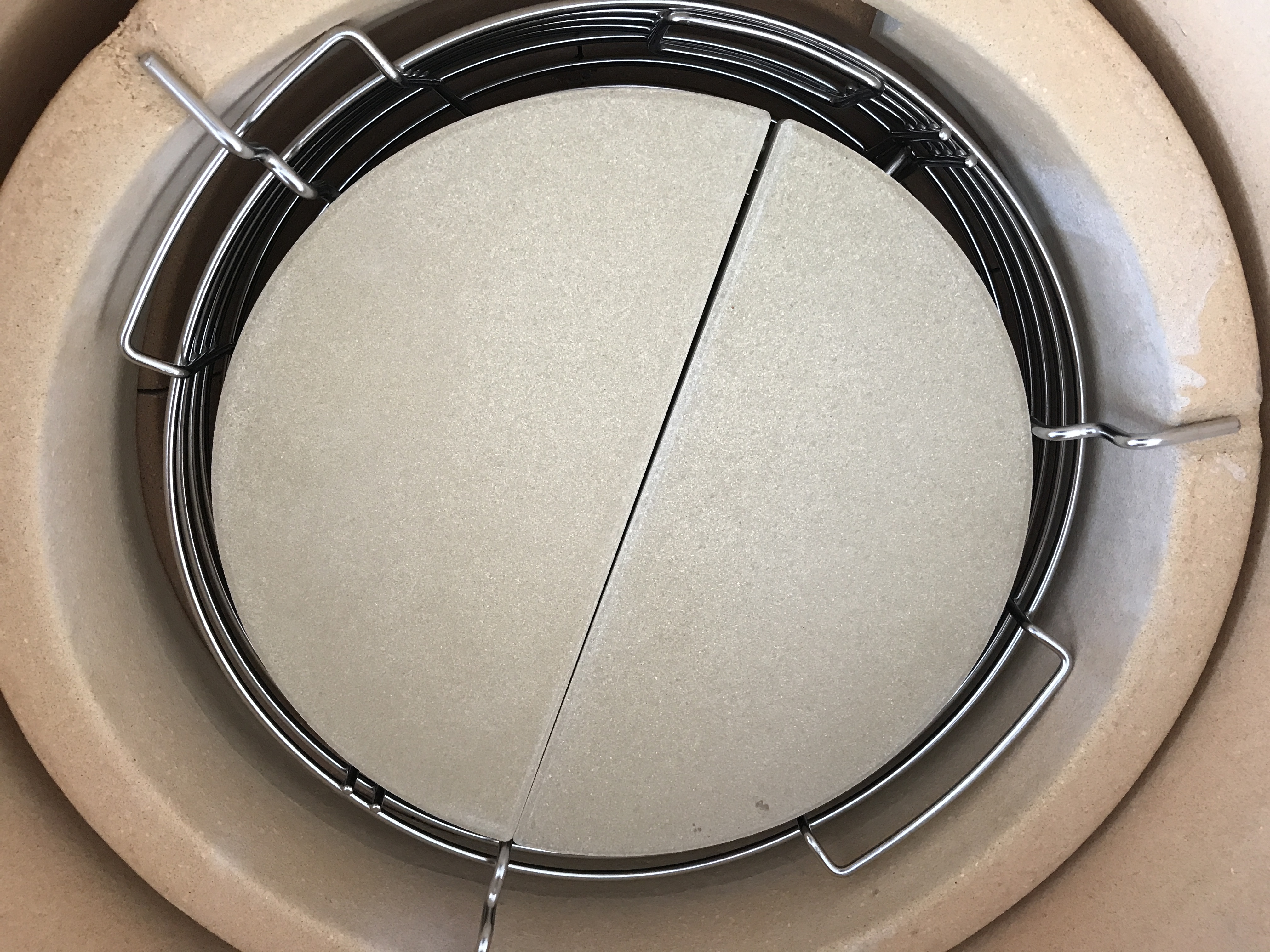 Also die Holzkohle angezündet und gleich, auch wenn Feuerseitig noch nicht viel passiert war, die Keramikplatten in den Grill eingesetzt damit ich meine geplanten Rippen auch schön in indirekter Hitze machen kann.
