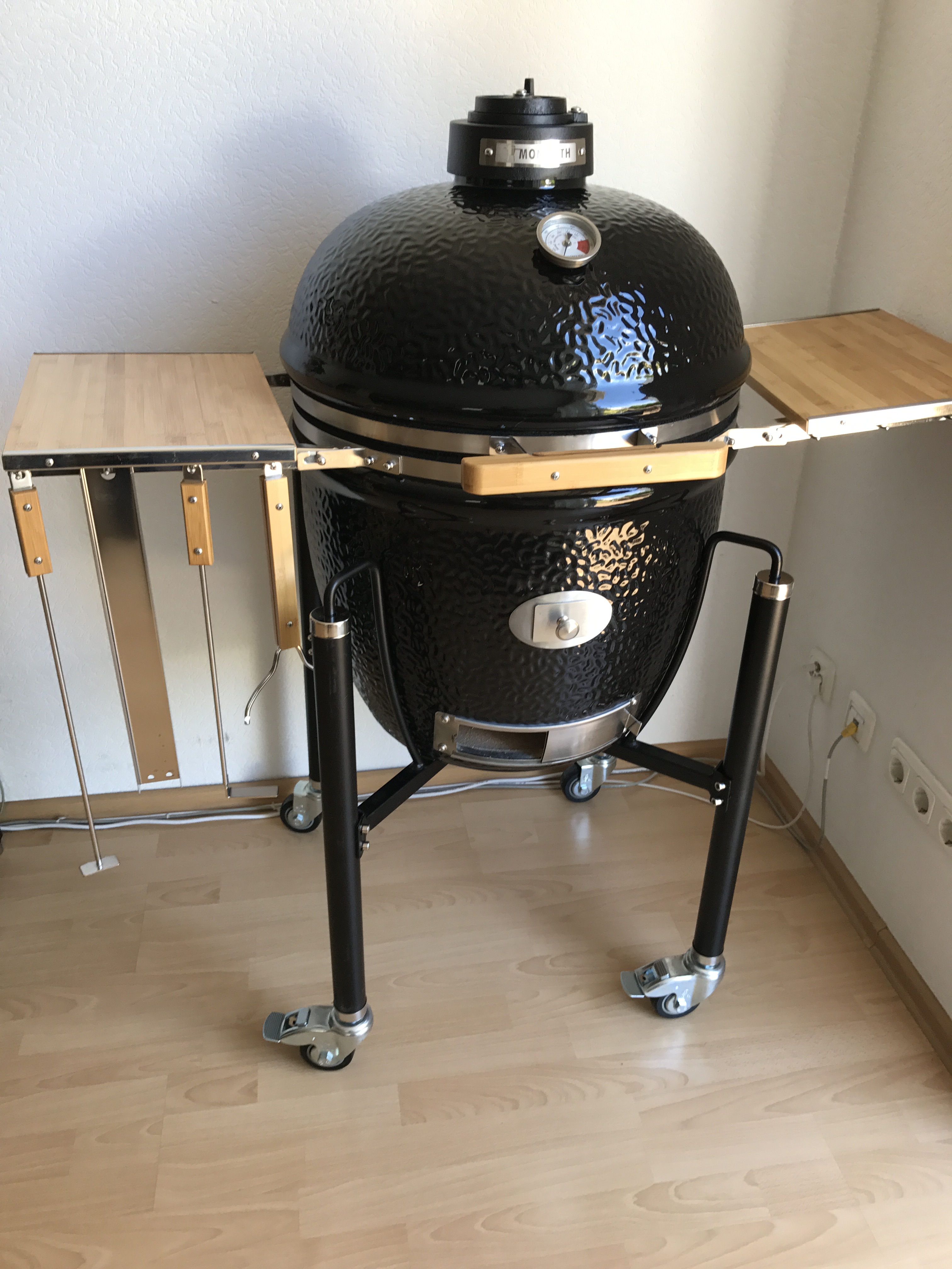 Das geniale, auch andere Kunden waren an Keramik Eiern interessiert und so konnten wir prima in die Diskussion über Sinn, Nutzen und Möglichkeiten einsteigen. Eigentlich wollt ich ja nur Info’s, aber wie immer habe ich dann doch was gekauft. Ist mir und der Familie eingefallen, dass ich bald Geburtstag habe, und schon war ein Grunde für den neuen Grill gefunden. Also alle wieder per U-Bahn nach Hause und ich mit dem Ding im Auto, nee bin doch lernfähig 🙂 Doch, die Kiste besser liefern lassen. Zum Glück !